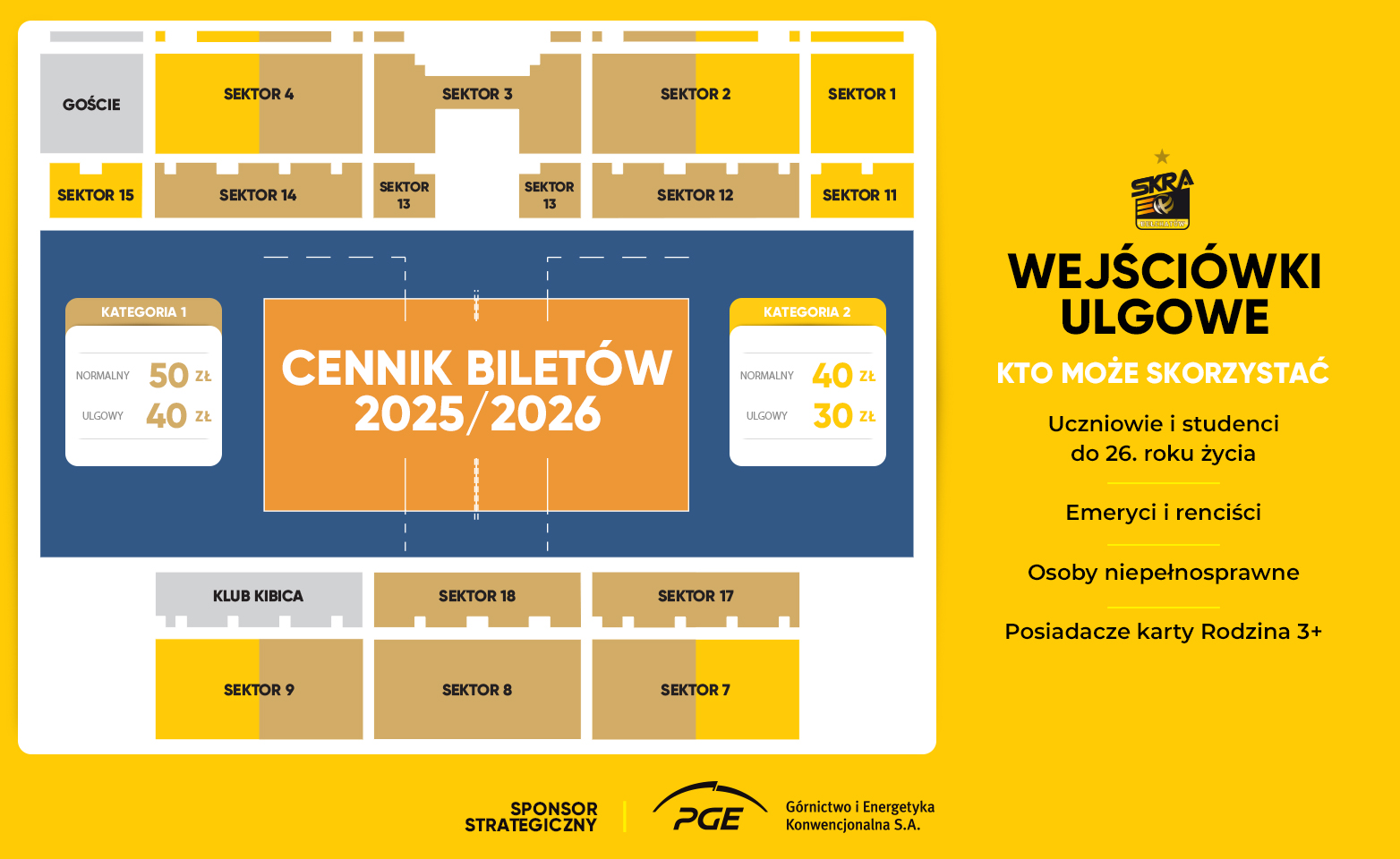 Bilety na mecz z PGE GiEK Skra Bełchatów - Cuprum Stilon Gorzów możecie nabyć on-line w serwisie bilety.skra.pl oraz stacjonarnie w Sklepie Kibica w Hali Energia od poniedziałku do piątku w godzinach 8:00-16:00.